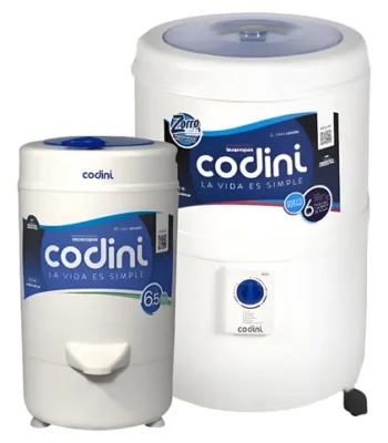 Descripción del producto LAVARROPAS SEMIAUTOMATICOS CODINI - SILENT 4051 - Lavado Silencioso: El lavado se produce debajo del nivel de agua logrando una disminución en el nivel de ruido, diferenciándose del clásico sonido que produce el equipo vaivén. - Sistema de lavado Oriental: Las prendas se mueven desde la parte inferior de la cuba hacia arriba, en un movimiento circular amplio. Generando un rozamiento mayor entre prendas y mejor efectividad en el lavado. - Disolución eficaz del jabón: El nuevo diseño del agitador Codini, genera una turbulencia que disuelve el jabón mejor y más rápido. Lavado más rápido: ¡solo 15 minutos! Gracias a una mejora en la disolución del jabón, el prelavado se elimina, disminuyendo el tiempo necesario para dejar la ropa limpia. ESPECIFICACIONES TECNICAS: Capacidad de lavado 10kgs Desborde de seguridad No Duración del ciclo más largo 15 Electrobomba de desagote No Placa electrónica No Programas básicos 6 Tapa traslúcida Si Ubicación del comando Frontal Válvula de ingreso de agua No Carga y descarga de agua: Manual Medidas: 84cms alto, 53cms ancho, 56cms profundidad Peso bruto 9,97 Kg ---------------------------------------------------------- Descripción del producto SECARROPAS CENTRÍFUGO ADVANCE 6.5 KG Optimiza tu experiencia de secado con el secarropas centrífugo Advance de 6.5 kg, diseñado para ofrecer un rendimiento excepcional en su funcionamiento. Con un sistema avanzado de absorción de vibraciones, este modelo garantiza un funcionamiento más silencioso y estable, evitando ruidos molestos durante su operación. Características destacadas: Absorción superior de vibraciones: Reduce el ruido y mejora la estabilidad durante el ciclo de centrifugado. Sistema de seguridad para niños: Protección adicional para el uso seguro en hogares con niños. Aislación eléctrica total: Diseño de alta seguridad que previene cualquier riesgo eléctrico. Apertura automática de tapa: Permite un acceso rápido y conveniente al interior del secarropas sin esfuerzo. Freno autoajustable: Asegura un funcionamiento eficiente y seguro durante el ciclo. Tapa visor: Diseño innovador que permite visualizar el proceso de centrifugado sin necesidad de abrir la tapa, brindando mayor comodidad y seguridad. Especificaciones técnicas: Capacidad 6.5kgs Material exterior Polycron blanco Material interior Tambor de acero inoxidable Motor termoprotegido Si Velocidad 2800 rpm Dimensiones del producto: 350 mm (ancho) x 400 mm (profundidad) x 640 mm (alto) Dimensiones embalaje: 370 mm (ancho) x 450 mm (profundidad) x 670 mm (alto) Peso bruto: 8.82 kg Peso neto: 9.02 kg Garantía de fábrica: 12 mesesColección de fin de semana