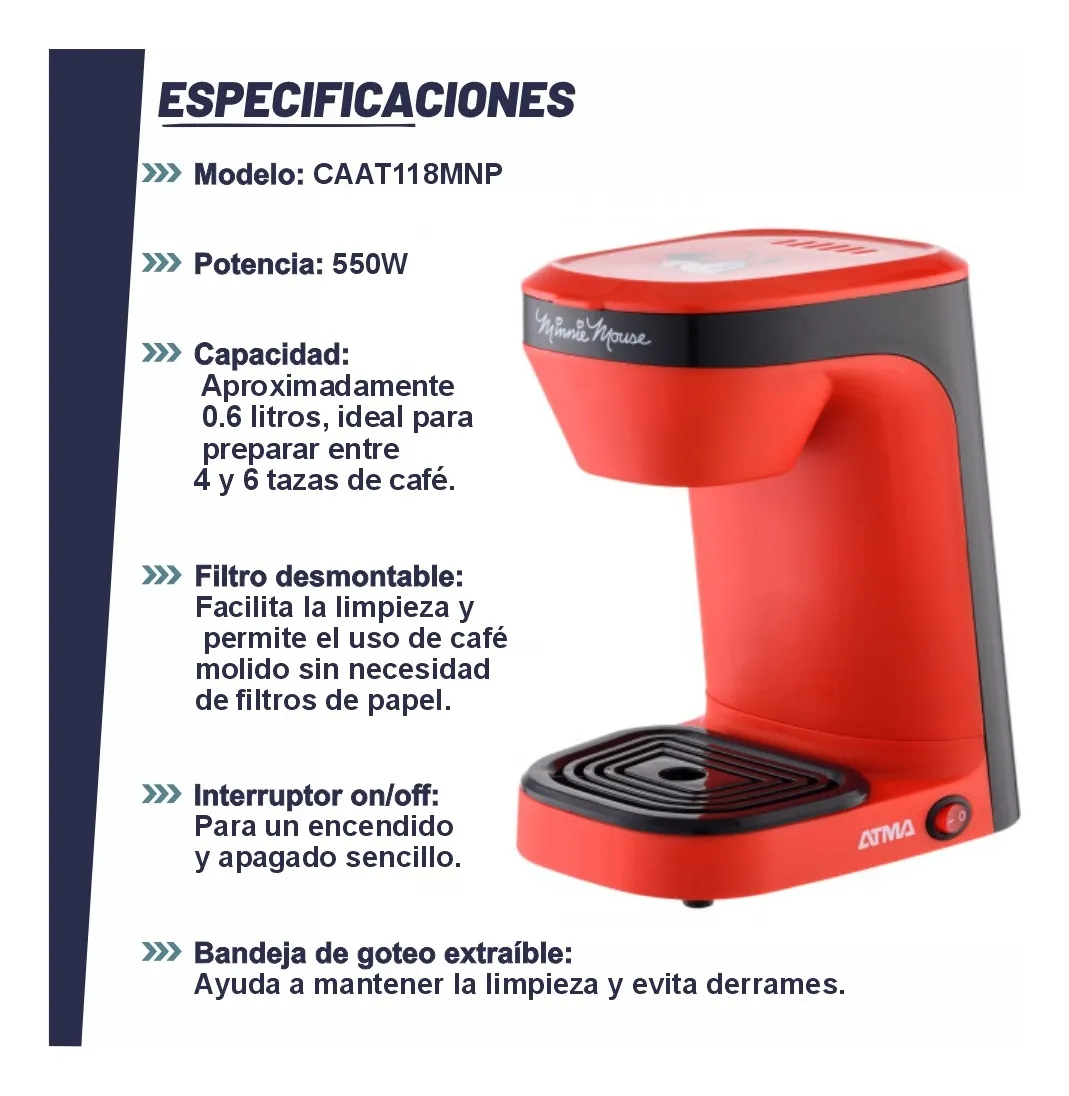 Cafetera Filtro Atma Minnie Disney 550W c/taza personalizada
