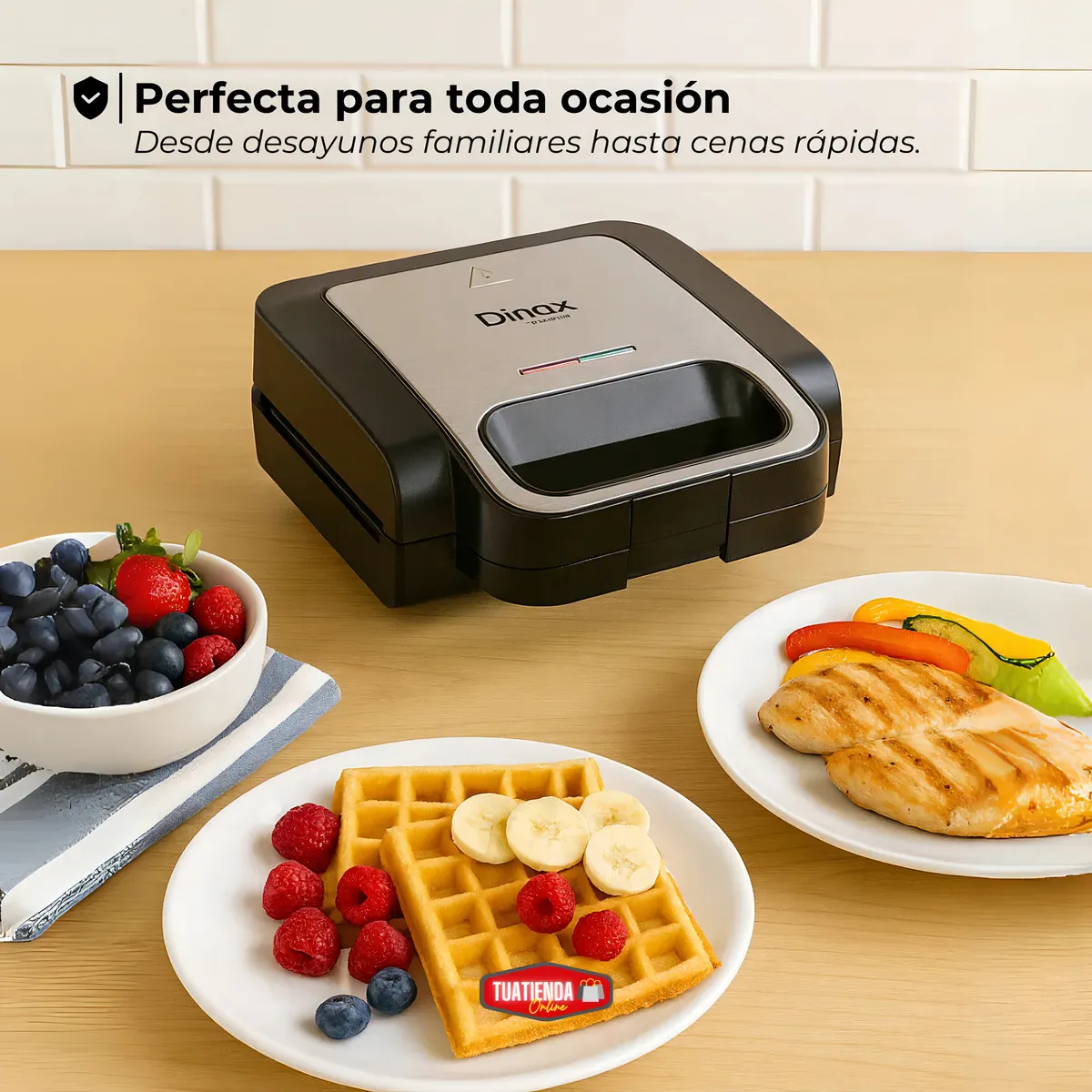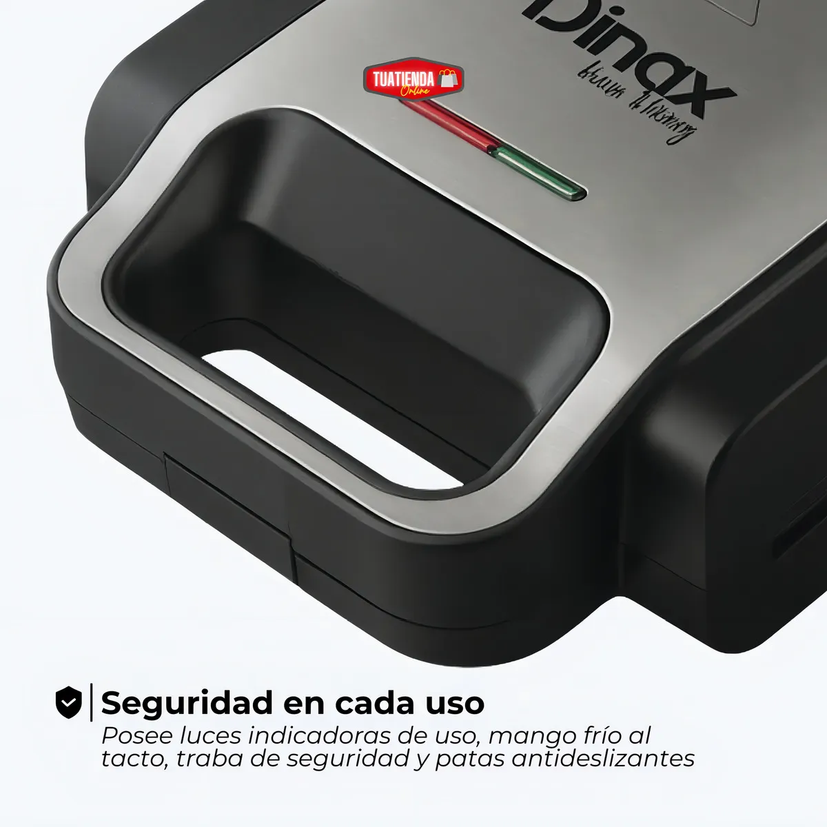 La Sandwichera 3 en 1 Dinax es el electrodoméstico ideal para quienes buscan practicidad y variedad en la cocina. Con un solo equipo podés preparar sándwiches, waffles y grill de manera rápida, segura y sin complicaciones.
